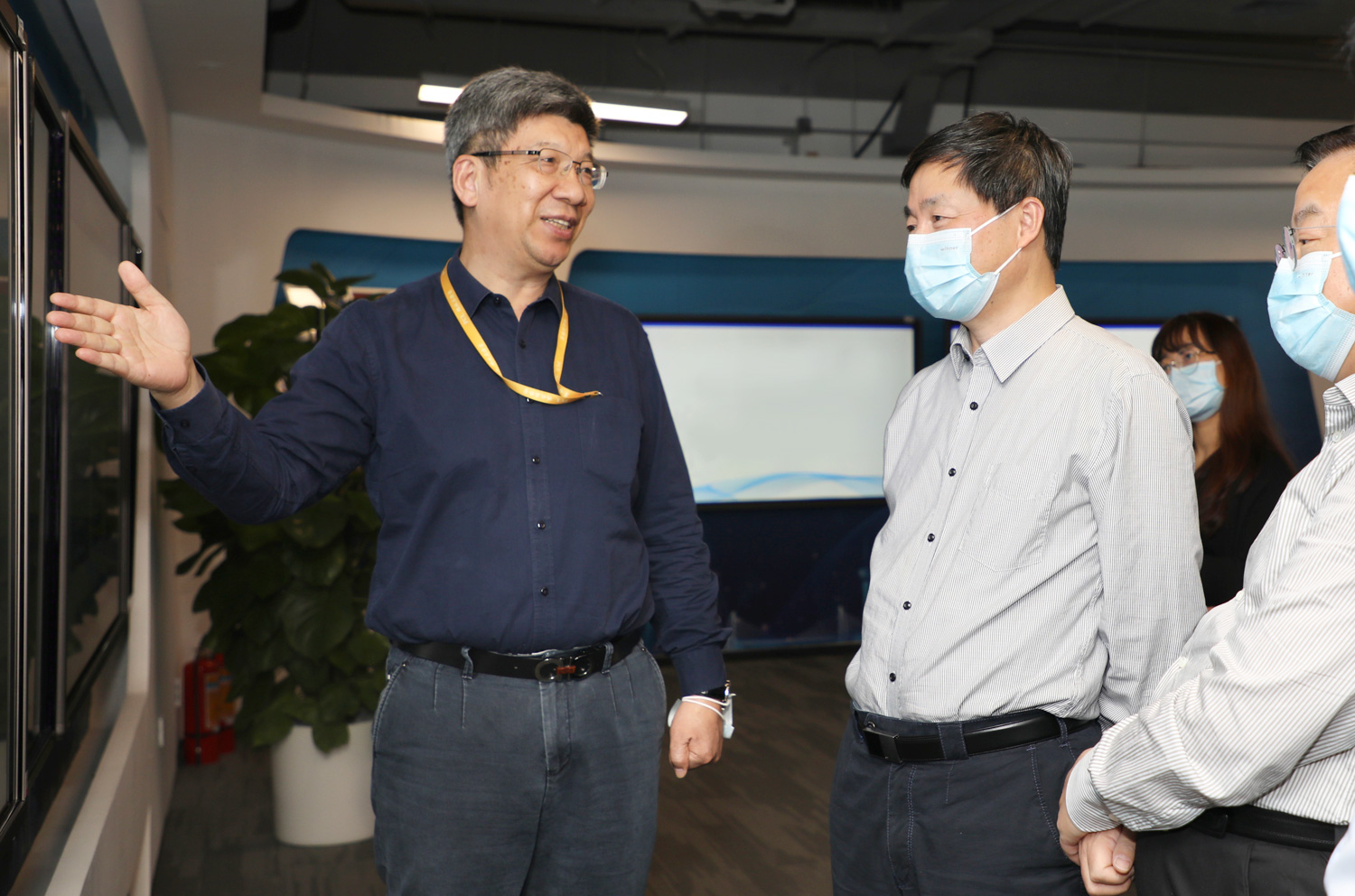 2020年11月12日,中国电信集团有限公司董事长柯瑞文、总经理李正茂、党组副书记邵广禄、副总经理刘桂清一行到访鹏城实验室交流访问。鹏城实验室主任高文院士与实验室有关领导,亲切接待柯瑞文董事长一行,陪同参观实验室综合展厅。