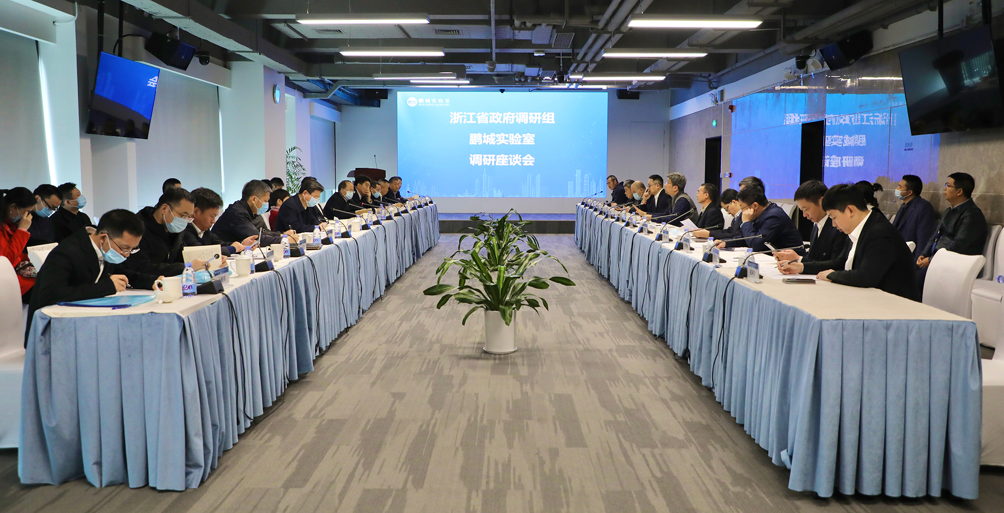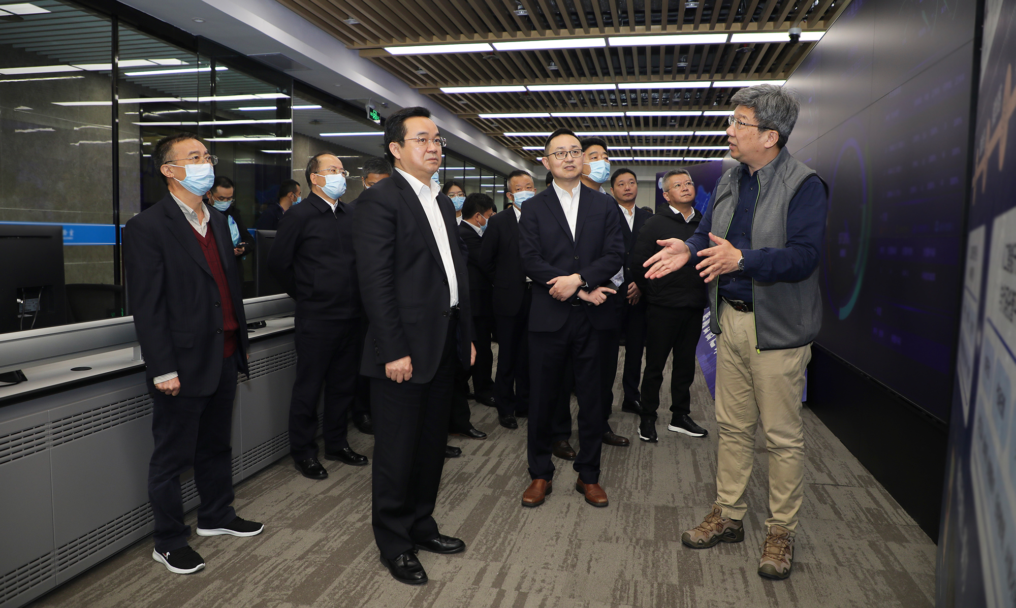 2020年12月16日,浙江省副省长高兴夫率队调研鹏城实验室,参观“鹏城云脑II”大科学装置,座谈交流人工智能超算装置建设、科研机制体制创新等工作的经验与思考。广东省科技厅二级巡视员周木堂、深圳市政府副秘书长李卓文、深圳市科创委副主任钟海等陪同。鹏城实验室领导邹鹏教授代表实验室主任高文院士热情接待高兴夫副省长一行,并与有关部门、中心负责人参加座谈。
