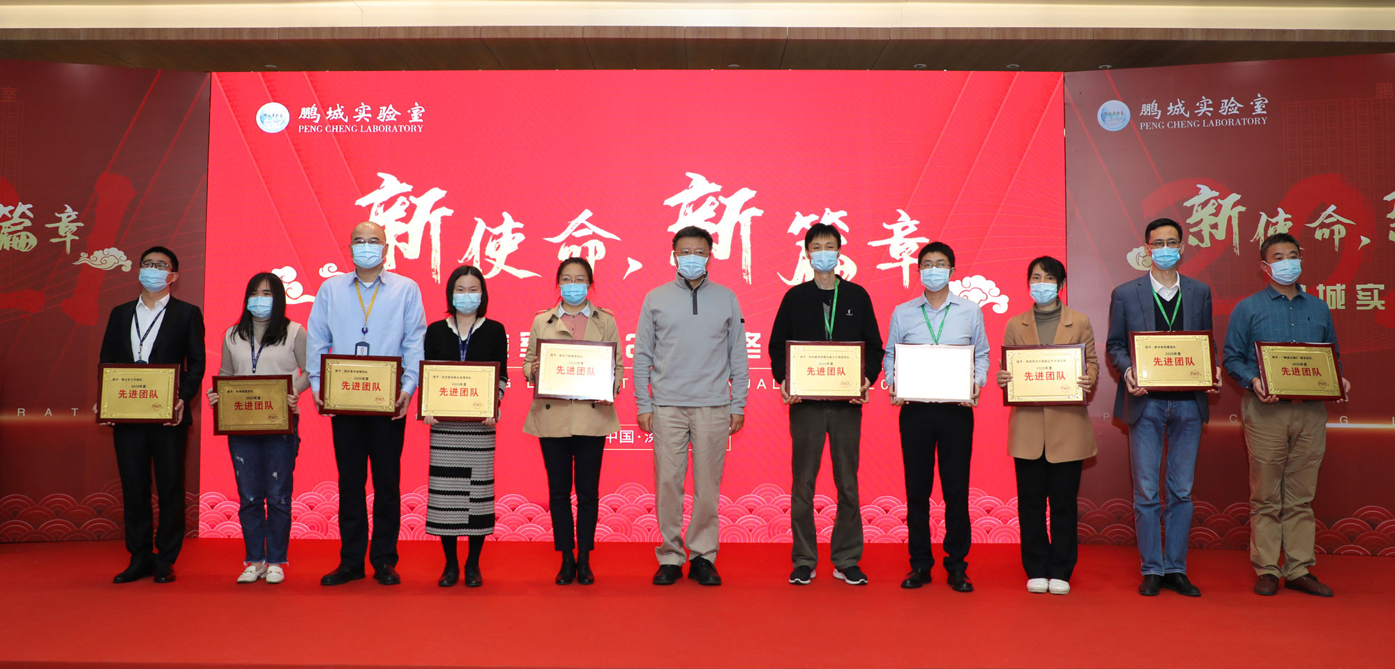 大会期间,实验室开展了年度先进表彰活动,实验室领导、院士代表与参会嘉宾分别为2020年“先进团队”和“先进个人”颁发奖牌、绶带。鹏城实验室人工智能研究中心王耀威博士作为优秀员工代表作了精彩发言。鹏城实验室2020年终总结大会在欢乐喜庆的氛围中落下帷幕。