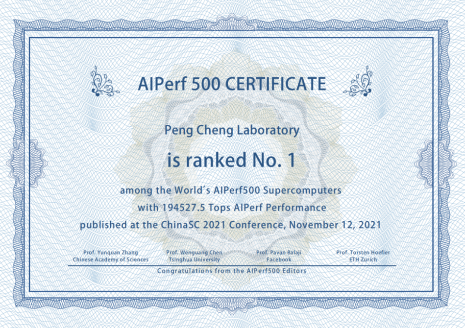AIPerf500由多位国内外专家学者发起,由ACM中国高性能计算专家委员会(AMC SIGHPC China)和中国大数据与智能计算产业联盟联合推出,旨在填补融合计算领域评测标准的空白。此次排行榜的参与单位包括多个知名超算中心与大型云计算平台,并覆盖了国内外各种系统类型。“鹏城云脑II”继去年取得首届AIPerf500榜单冠军后,此次再度脱颖而出赢获榜首,充分展现了其优越的智能计算性能和软硬件系统协同水平。