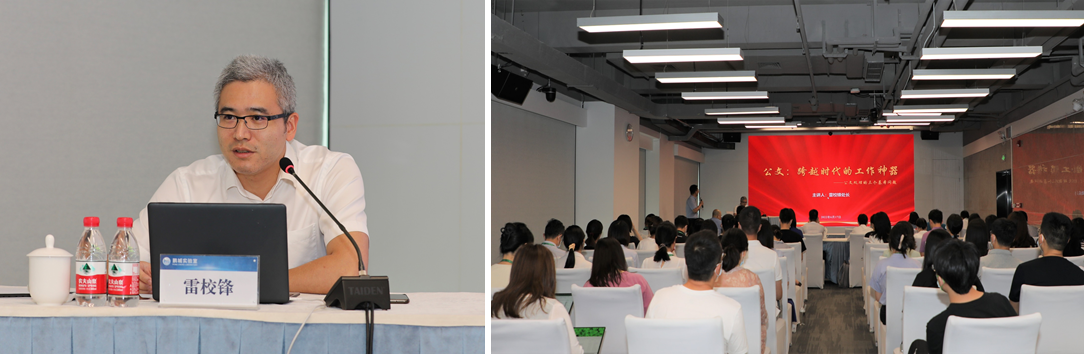 培训会上,雷校锋处长结合自己长年积淀的公文写作经验与思考体会,系统全面地讲解了“公文是什么、公文如何办、公文怎么写”,以及什么样的公文是“有担当、有内涵、有颜值”的公文。他指出,“公文写作,本质上是一种服务工作”,并认为公文写作要坚持“六化”理念:人性化、目的化、提问化、结构化、推理化及流程化。