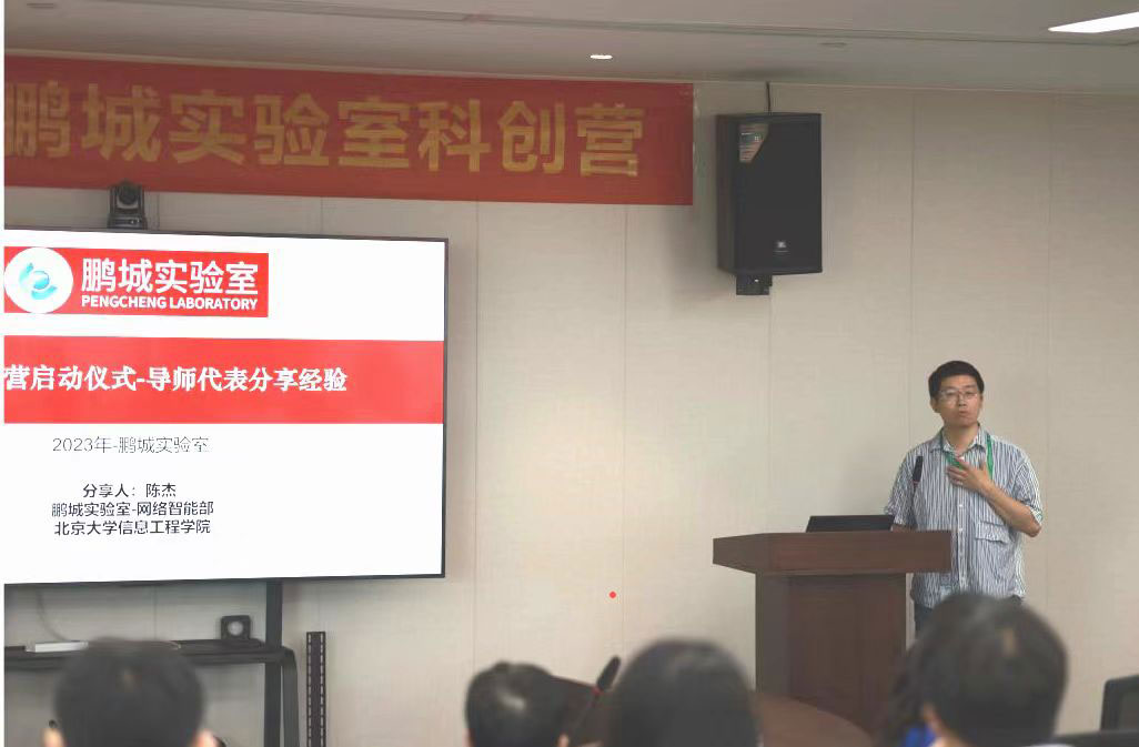 开营仪式上,北京大学博士生导师、实验室智能部陈杰教授作为导师代表讲述了自己早期加入实验室的科研经历,并向营员们介绍了实验室牵头研制的大型科技基础设施“鹏城云脑II”等重要科研成果。他表示,大家如果加入到实验室的大家庭,不仅能得到专业学者的悉心指导,还有机会参与到重大科研任务,鼓励营员们努力提升自己,设定科创目标,并为之努力奋斗。