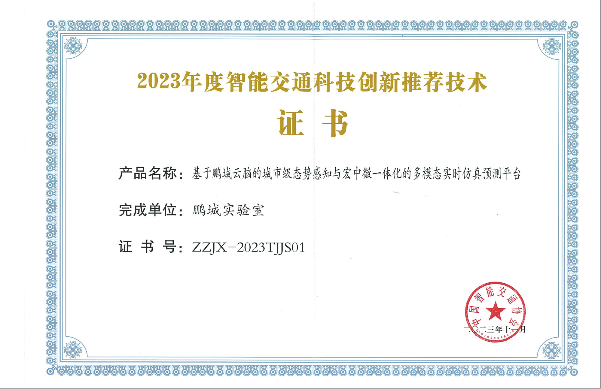 2023中国智能交通大会(ITSAC 2023)于11月17日至19日在厦门举行,作为中国智能交通领域规模最大、范围最广、影响力最强的行业活动之一,吸引了来自国内智能交通行业的顶尖企业和科研机构参加。鹏城实验室参加了此次交通大会的三大主题活动之一——2023智能交通科技创新展览会,由实验室网络智能研究部视觉智能研究所研发的“基于鹏城云脑的城市级态势感知与宏中微一体化的多模态实时仿真预测平台”在50多项参展产品技术中脱颖而出,荣获2023年度智能交通科技创新推荐技术奖。