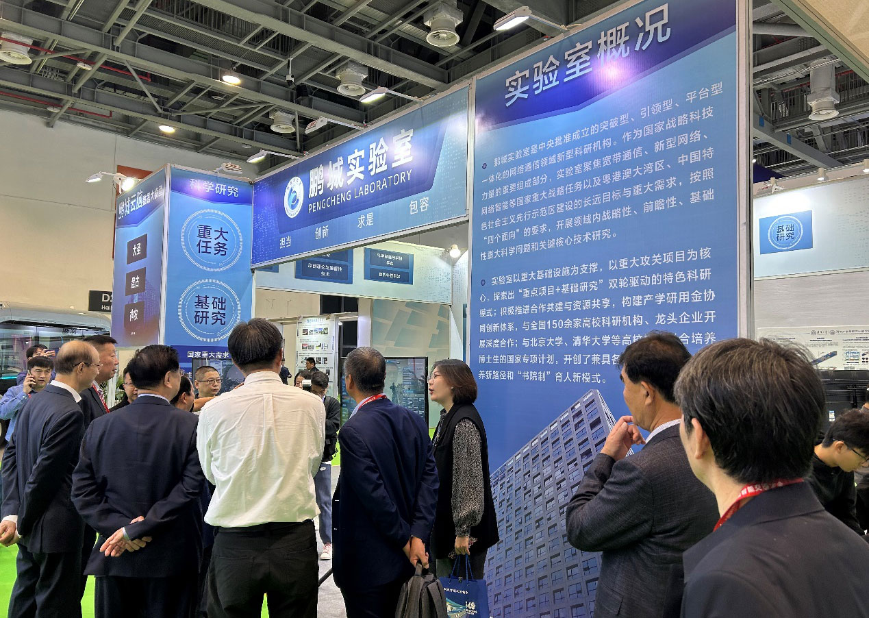 (厦门市政府领导正在了解鹏城实验室展出的创新技术成果)